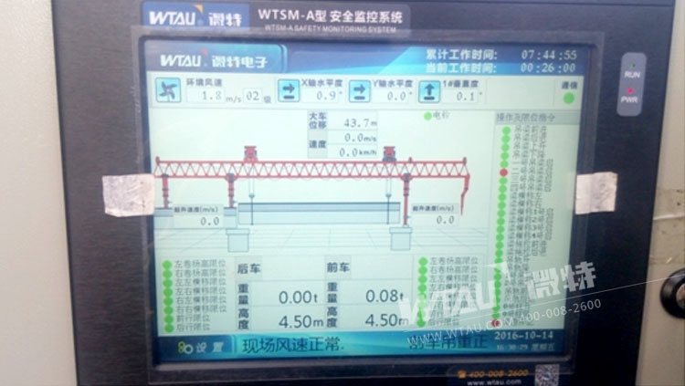 圖為TJ165架橋機(jī)配備的微特WTAM-A型安全監(jiān)控系統(tǒng)