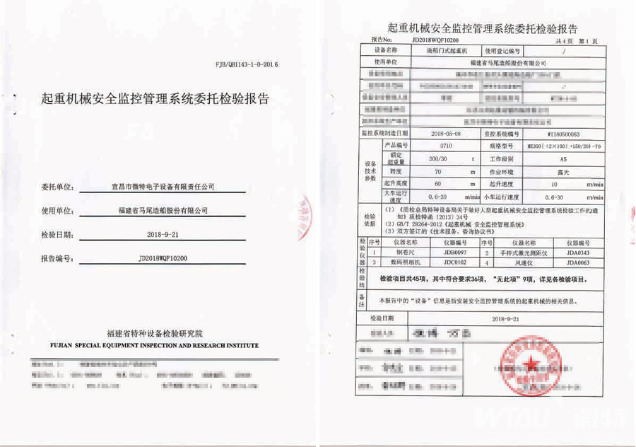 日前,微特為福建省馬尾造船股份有限公司一臺(tái)300T造船門式起重機(jī)配裝安全監(jiān)控系統(tǒng)改造項(xiàng)目已完工,并通過(guò)了福建省特種設(shè)備檢測(cè)研究院的驗(yàn)收。