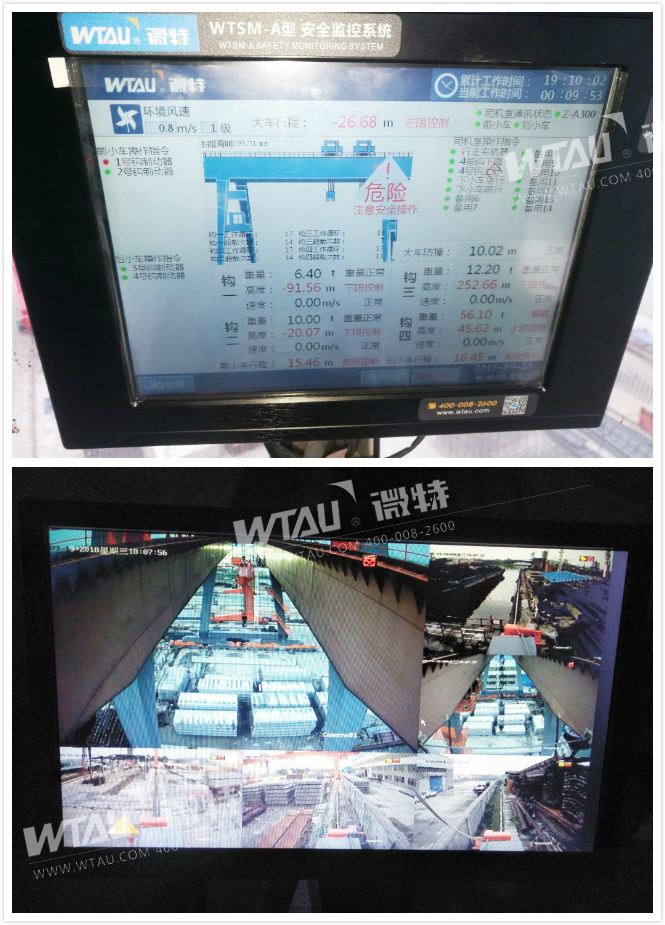 圖為WTSM-A龍門吊監(jiān)控系統(tǒng)主機及視頻監(jiān)控顯示器