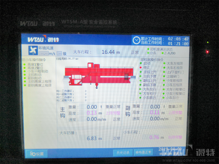 微特WTSM-A型起重機安全監(jiān)控系統(tǒng)具有實時監(jiān)控,動態(tài)顯示,聲光報警,數(shù)據(jù)存儲,斷電記憶以及密碼保護等功能,且儀表本身設計具有抗干擾性強,操作界面方面,通用性強等優(yōu)點。經(jīng)過微特技術(shù)工程師的現(xiàn)場安裝調(diào)試完后順利通過了客戶及當?shù)靥貦z機構(gòu)的驗收,贏得了客戶的認可,也為我們今后在淄博地區(qū)業(yè)務的深入開展起到了一個良好的開端。