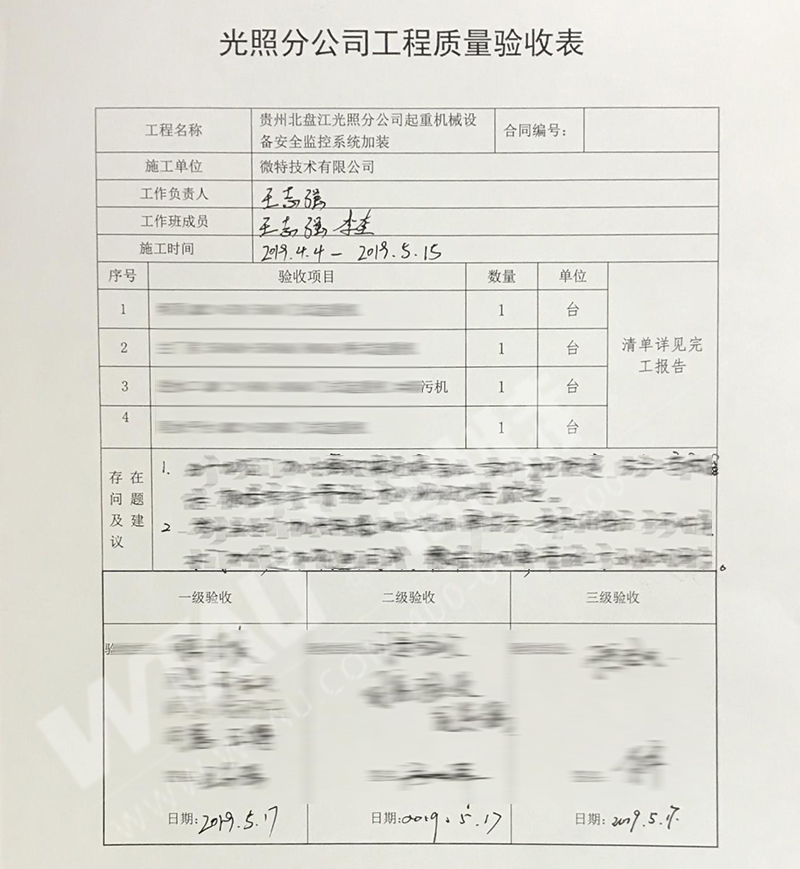 貴州北盤江光照分公司安全監(jiān)控系統(tǒng)加裝項目在客戶要求定檢時間前完工并且一次性通過電廠內部三級驗收且無整改項目,驗收現(xiàn)場得到客戶肯定。同時,項目已順利通過黔西南特種設備監(jiān)督檢驗。