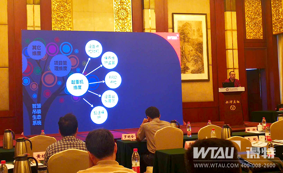 微特電子作為起重安全專家企業(yè)特邀參加本次會議,并在會議現(xiàn)場由市場總監(jiān)李彬作題為“起重機(jī)智慧吊裝生態(tài)系統(tǒng)”的交流演講。
