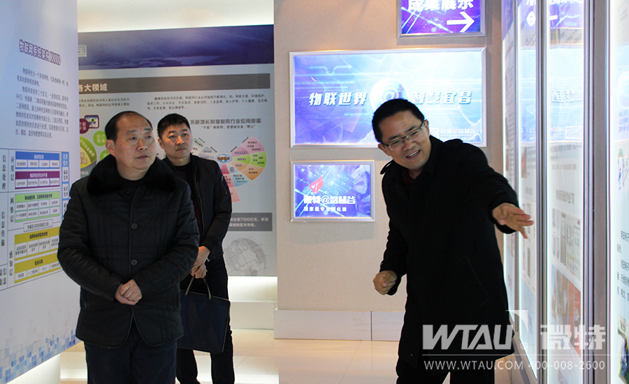 在孵化器展示廳聶總向黃書記介紹傳感物聯(lián)相關的在孵企業(yè)
