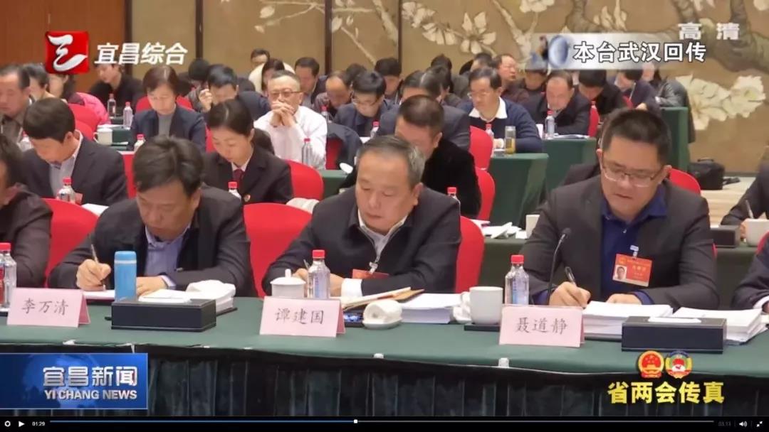 新聞截圖:省十三屆人大一次會(huì)議宜昌代表團(tuán)審議會(huì)議現(xiàn)場(chǎng)。
