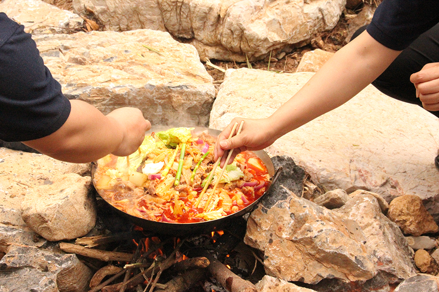下午十多公里的山路要走,即使是野炊各隊(duì)安排的伙食也是非常的豐富。
