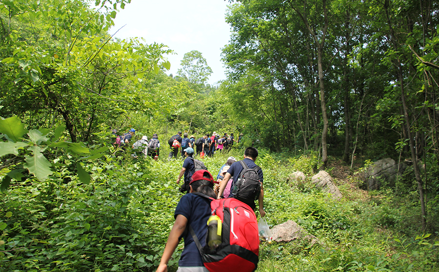 野炊結(jié)束各隊(duì)稍作休整即開(kāi)始出發(fā),走在山澗的小路上,歡樂(lè)的隊(duì)伍打破了安靜的山林。