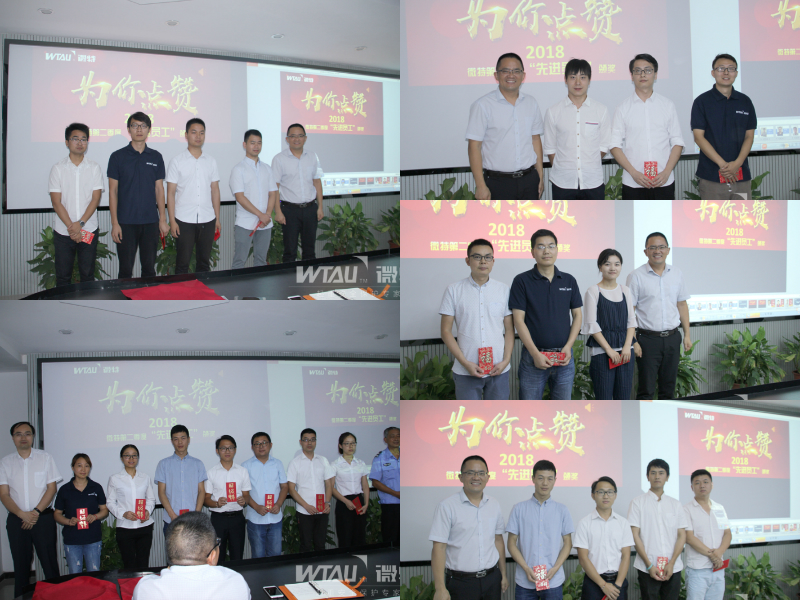 會議中,對各部門在第二季度工作中表現(xiàn)優(yōu)異的員工進行了表彰。上圖為微特聶總、高總與各部門先進及先進提名員工的合影。
