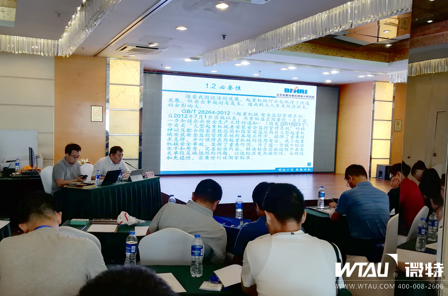 會議由全國起重機械標準化技術(shù)委員會趙春暉秘書長主持,大連理工大學高順德院長向會議致歡迎詞。北京起重運輸機械設(shè)計研究院有限公司總經(jīng)理助理岳文翀及國家起重運輸機械質(zhì)量監(jiān)督檢 驗中心袁方定高級工程師作為主講員參與宣講。微特技術(shù)有限公司高鈺敏副總經(jīng)理介紹了大型起重機械安裝安全監(jiān)控管理系統(tǒng)的應用實例和經(jīng)驗。