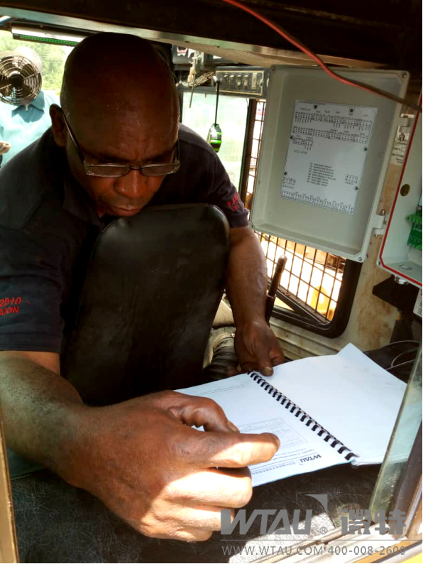 看!非洲兄弟帶著眼鏡在仔細研讀我們的WTL-A700型力矩限制器操作手冊