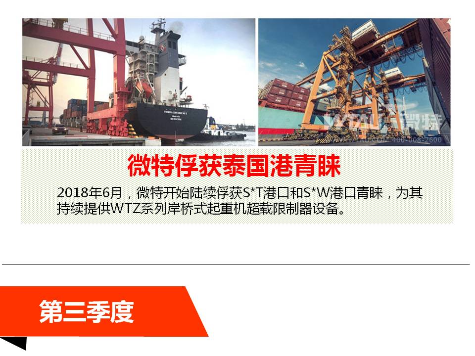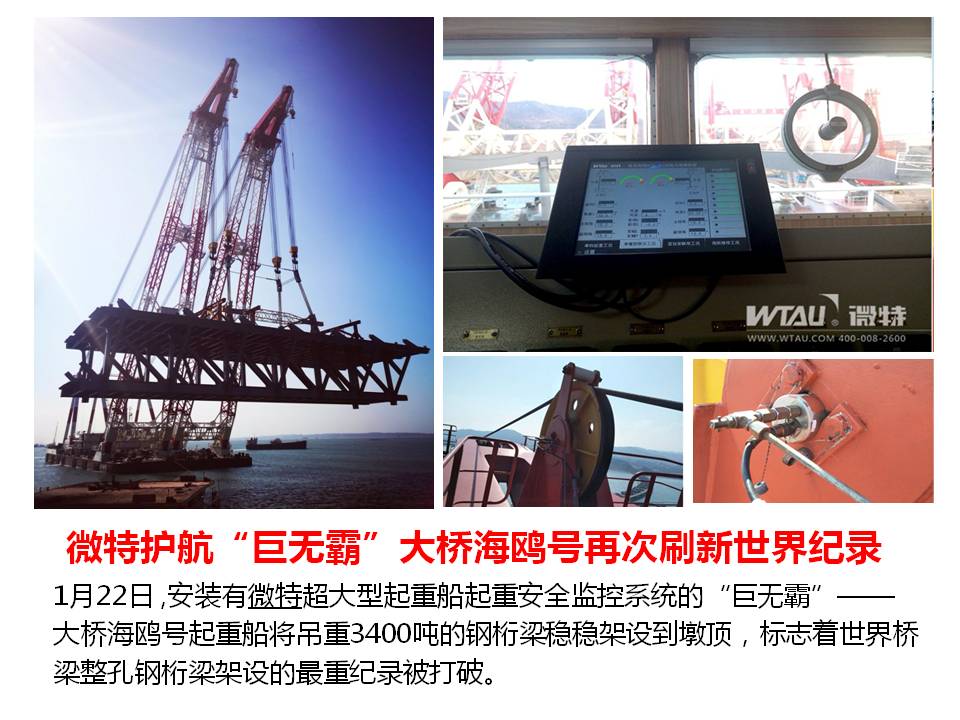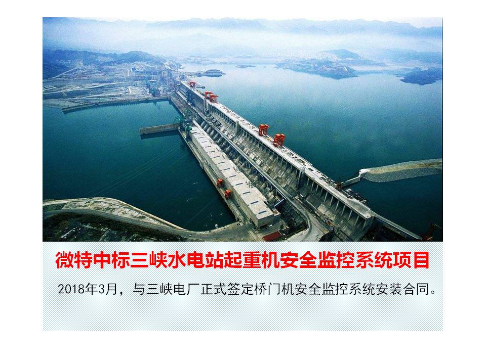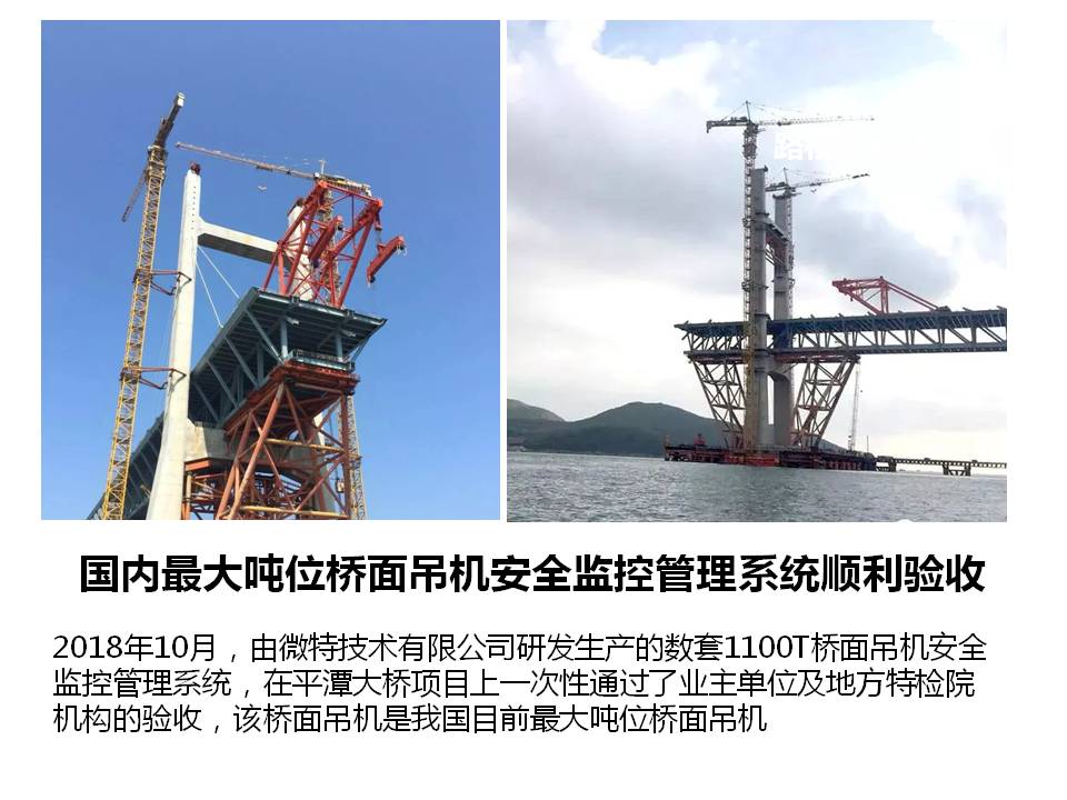 這一年,微特再次中標(biāo)三峽電站的所有壩頂門式起重機(jī)和廠房橋式起重機(jī)的安全監(jiān)控系統(tǒng)升級(jí)改造;成功進(jìn)入風(fēng)電裝備吊裝監(jiān)控、船用絞車安全監(jiān)控領(lǐng)域等;新的起重機(jī)施工過程點(diǎn)檢系統(tǒng)、防撞系統(tǒng)、壽命監(jiān)測(cè)系統(tǒng)投入使用。在大型裝備方面,2018年微特又摘獲數(shù)項(xiàng)中國(guó)起重機(jī)之最:國(guó)內(nèi)最大纜載吊機(jī)、最大的橋面吊、最大的廠房橋機(jī)安全監(jiān)控都采用微特產(chǎn)品,這再次證明了微特在大型重要起重機(jī)安全監(jiān)控方案的引領(lǐng)地位。