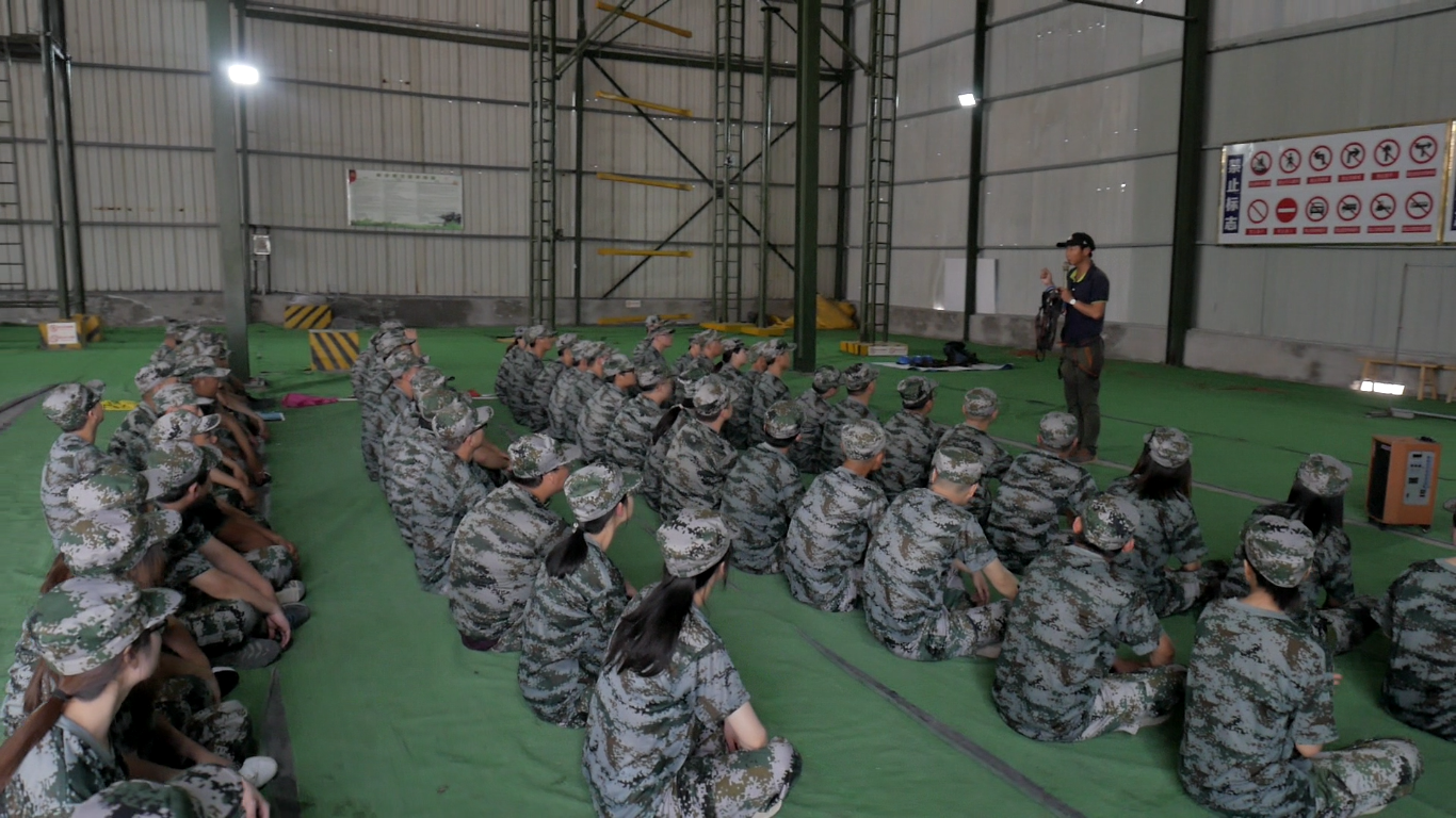 10分鐘極速換裝后,教官進(jìn)行活動(dòng)紀(jì)律說明,快速將隊(duì)員們調(diào)整為軍事訓(xùn)練狀態(tài)。