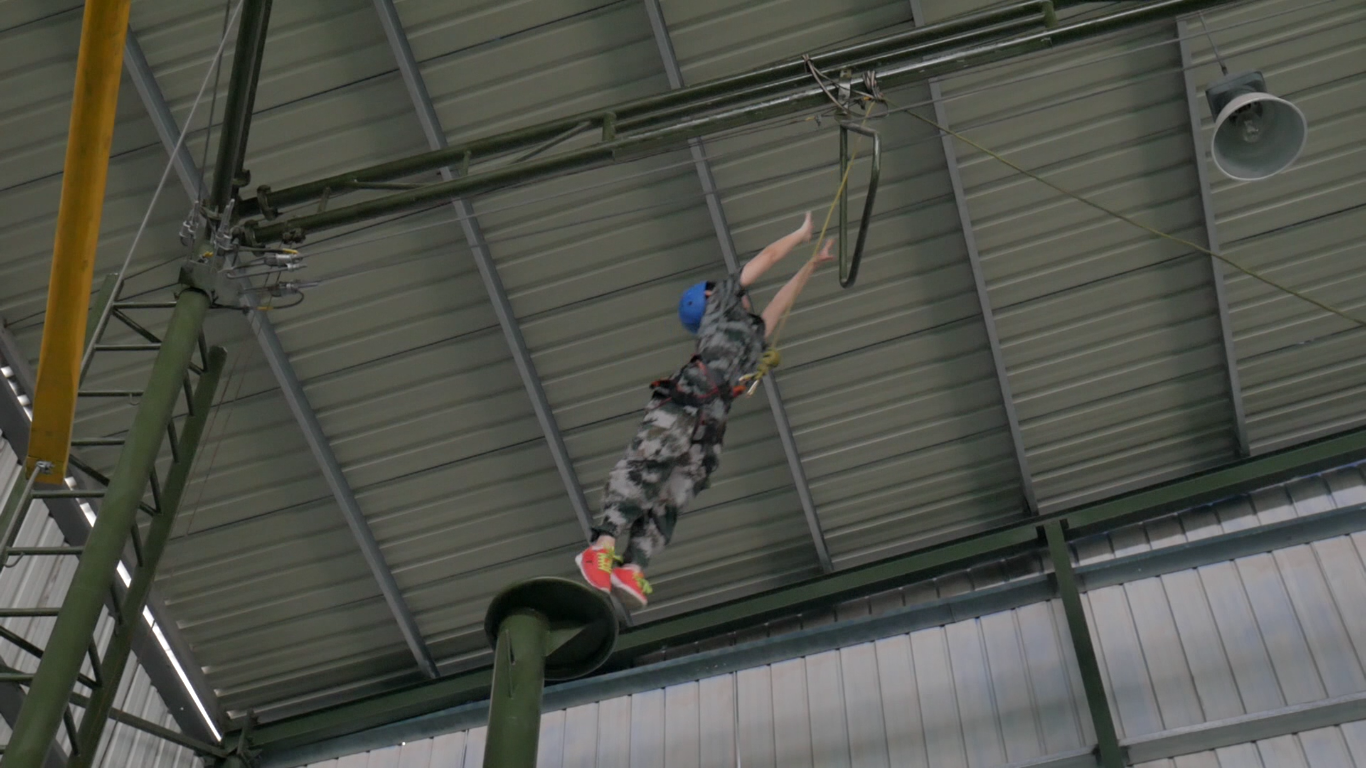 完成相關(guān)軍訓(xùn)科目的操練后,全體迅速轉(zhuǎn)場,進(jìn)入高空抓杠和一線生機(jī)項(xiàng)目。想要完成,個(gè)人和團(tuán)隊(duì)必須都有所突破。