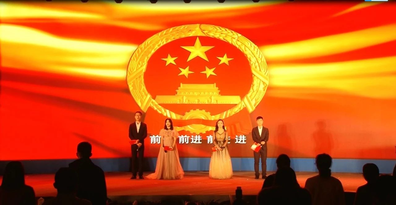 在活動開始前,主持人請所有在場人員全體起立共唱國歌,歌頌偉大祖國繁榮昌盛!在莊嚴(yán)的國歌聲中晚會正式開始。