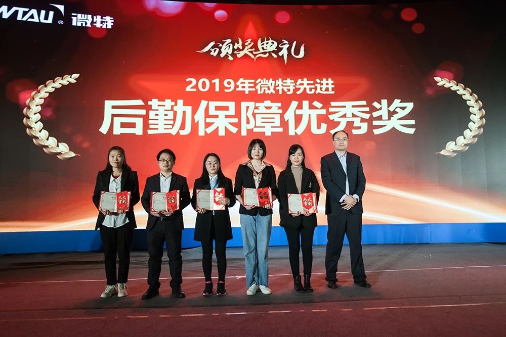 而后,微特輪值CEO李彬和訂單保障中心總經(jīng)理劉艷共同揭曉2019年年度先進員工及金牌團隊,微特董事長聶道靜分別為他們頒獎。