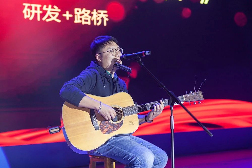 ▲研發(fā)高博燊傾情彈唱《南方姑娘》一曲,深情款款,不由得讓人想起屬于自己的那一位“南方姑娘”