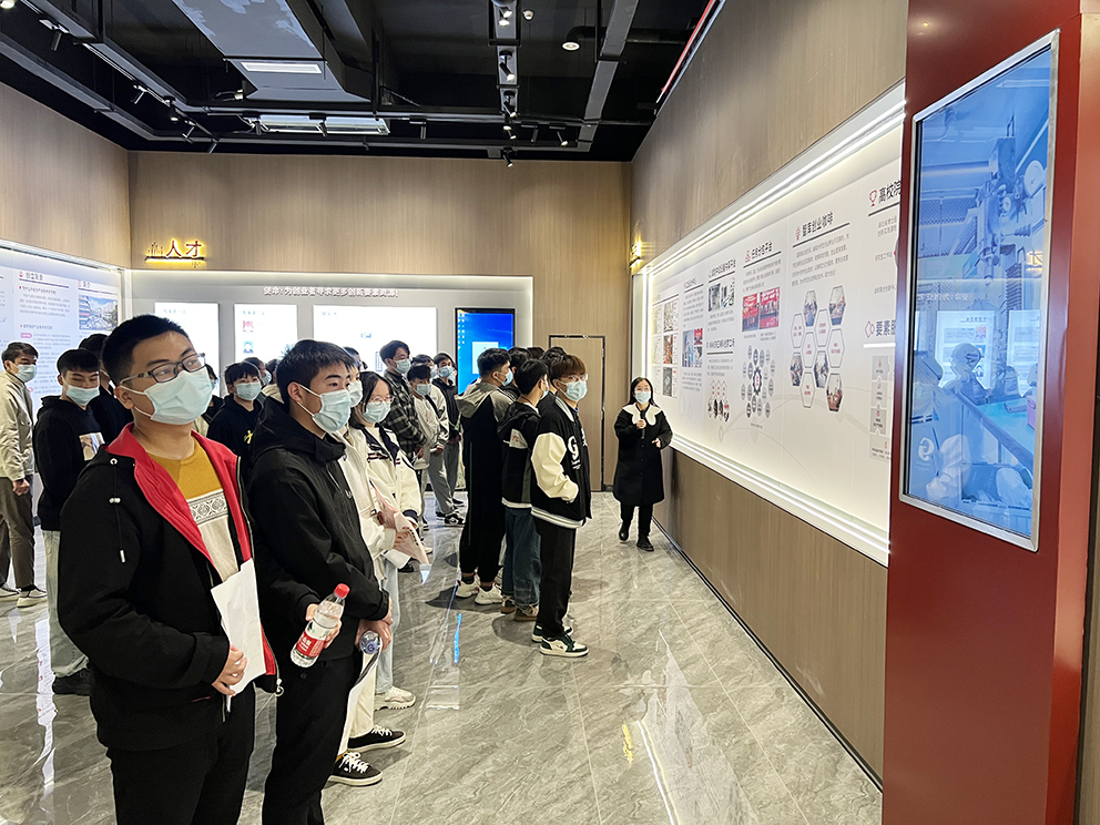 首站同學(xué)們參觀了微特投建的湖北省傳感物聯(lián)產(chǎn)業(yè)技術(shù)研究院以及產(chǎn)品應(yīng)用展廳,講解員帶領(lǐng)同學(xué)們了解微特的發(fā)展歷程,微特所參與的大國(guó)建設(shè),并觀看微特產(chǎn)品演示和大數(shù)據(jù)平臺(tái),在場(chǎng)學(xué)生紛紛贊嘆,表示在宜昌深處隱藏一家寶藏企業(yè)。接著同學(xué)們參觀了眾創(chuàng)工坊,了解到微特為大學(xué)生創(chuàng)業(yè)提供了環(huán)境優(yōu)越、設(shè)備齊全的創(chuàng)業(yè)環(huán)境。