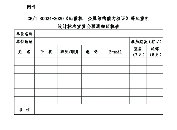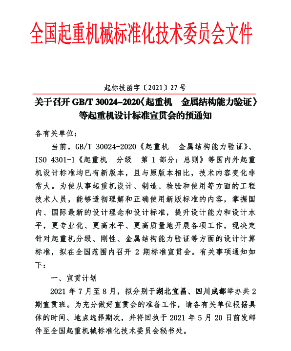 2021年7月第一期宣貫會(huì)將在湖北宜昌舉行,屆時(shí)全國起重機(jī)械行業(yè)設(shè)計(jì)、制造、安裝、改造、維修、檢驗(yàn)、使用、 監(jiān)管等單位的專家及從業(yè)人員將共聚宜昌,通過此次宣貫會(huì)與國標(biāo)主編單位深入交流,讓起重機(jī)行業(yè)相關(guān)單位及從業(yè)人員對標(biāo)準(zhǔn)有更準(zhǔn)確的理解,更專業(yè)化、更高水平、更高質(zhì)量地開展起重機(jī)行業(yè)各項(xiàng)工作。