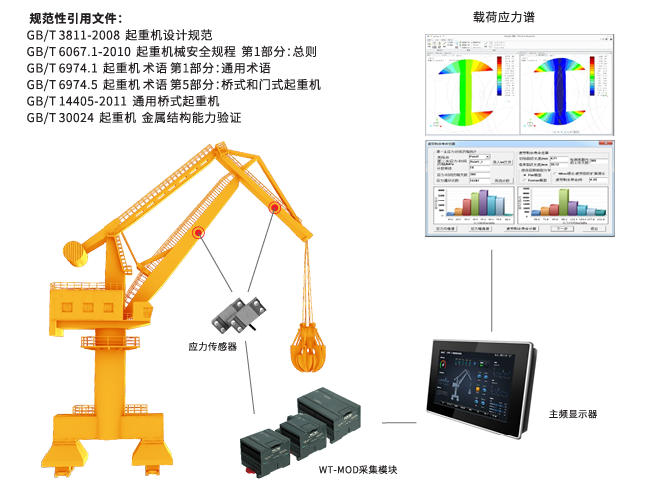 門座式起重機(jī)應(yīng)力在線監(jiān)測(cè)系統(tǒng),是根據(jù)結(jié)構(gòu)應(yīng)力和材料強(qiáng)度計(jì)算開發(fā)制造的能實(shí)時(shí)監(jiān)測(cè)、顯示主臂在各種載荷