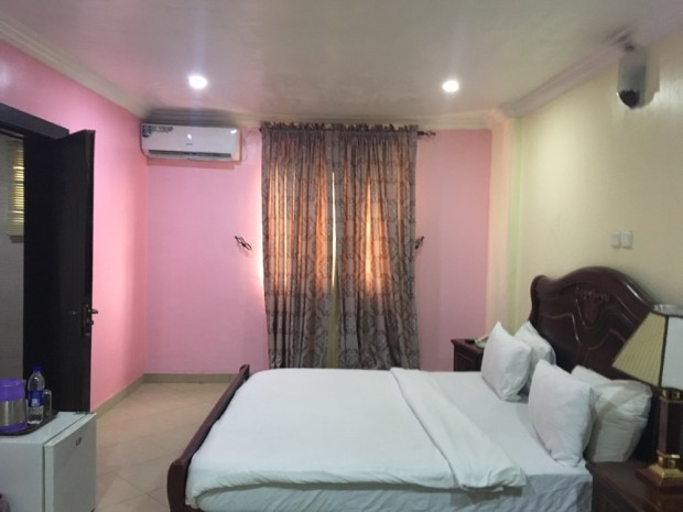 抵達(dá)酒店,據(jù)說這里相對安全一些。還碰到一間粉色的房間,運(yùn)氣還不錯(cuò)
