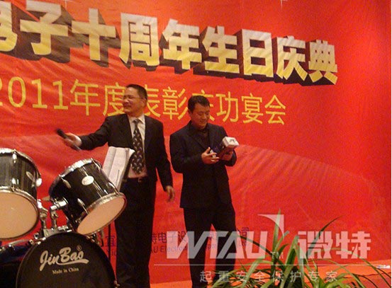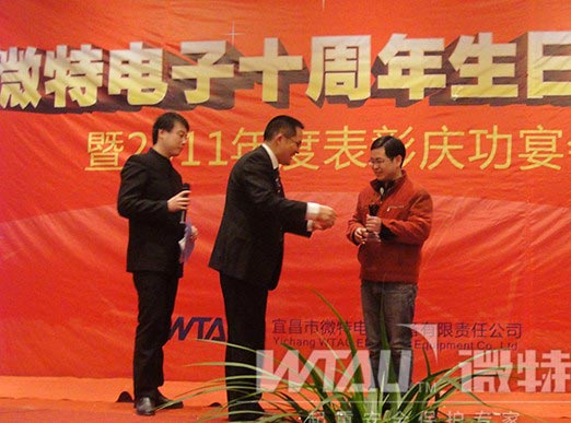 2011年度先進(jìn)表彰,明星閃耀。現(xiàn)生產(chǎn)部主管:羅毅,榮獲年度最燦爛的大獎(jiǎng)“微特之星”稱(chēng)號(hào)?。▓D為頒獎(jiǎng)現(xiàn)場(chǎng))